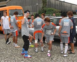でも、カクちゃん以外はコレがただの『フリ』だとわかっていたので、いつもなら嫌な顔しながらランニングシューズに履き替えるところを、笑いをこらえながら靴を履き替え体育館の外へ。