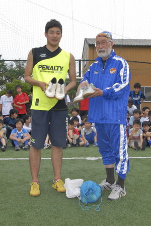 今回クリニックのご協力を頂きました、昨年まで宮城県サッカー協会の理事長をされていた松村さんとの記念の一枚です。